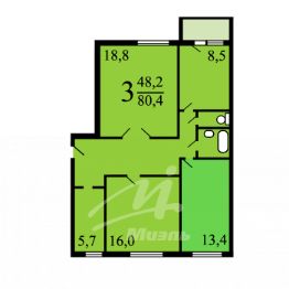 Раздельные комнаты: Три светлые комнаты площадью 12, 16 и 19 м² обеспечивают комфорт и уединение.