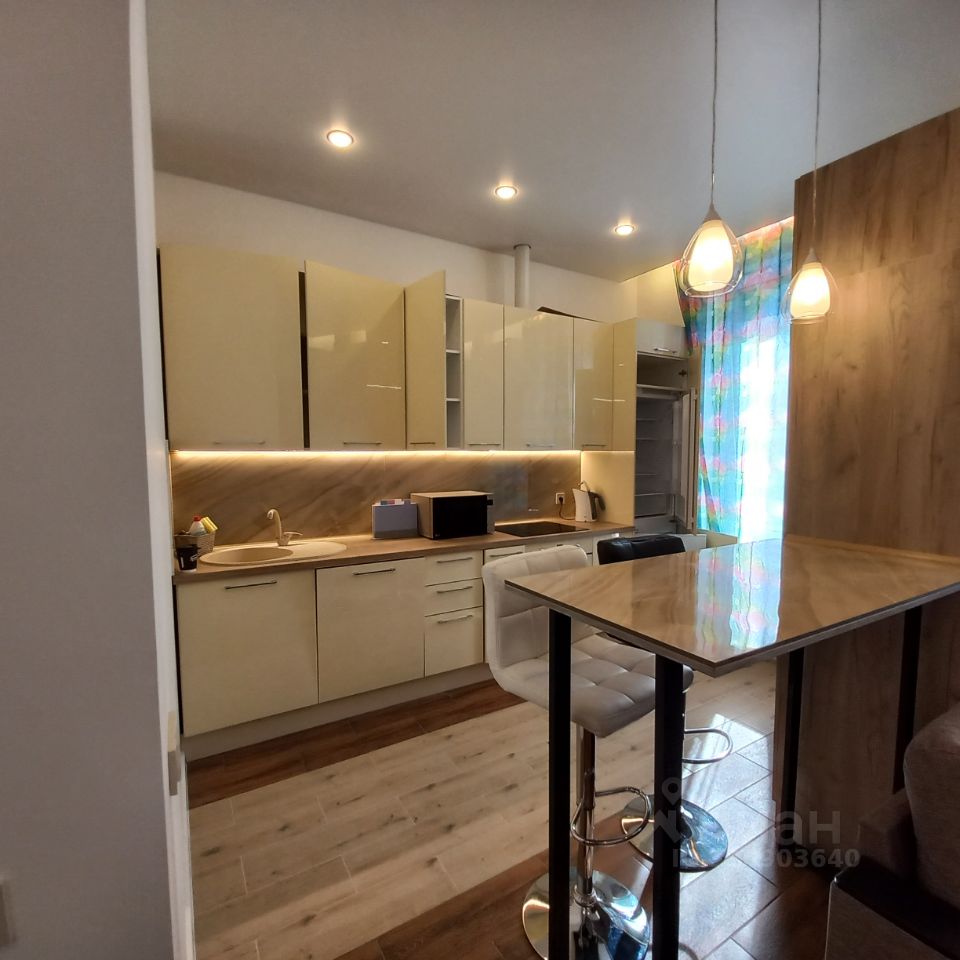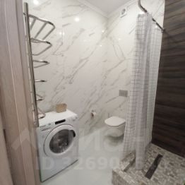 Квартира в ЖК бизнес класса Рихард. Квартира расположена в малоэтажной части ЖК, два больших окна с видом во двор, высокие потолки. Комната проходная. Ремонт в светлых тонах: на полу плитка, стены окрашены, натяжные потолки с подсветкой. Санузел совмещен, душевой поддон, тропический душ.