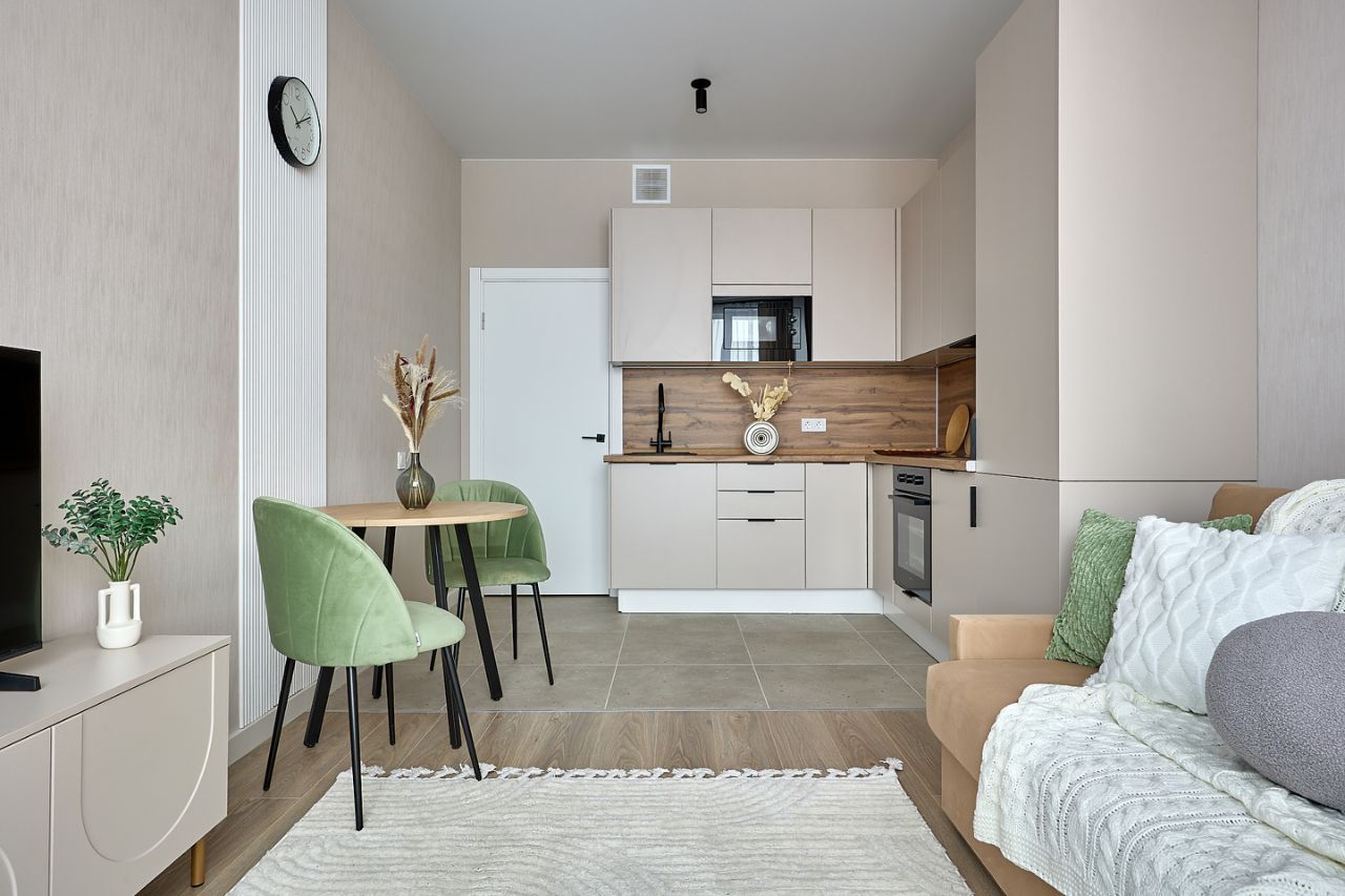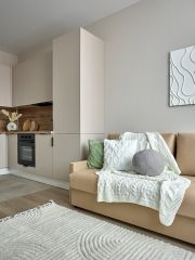 Квартира с удобной и продуманной планировкой, что позволяет максимально комфортно использовать пространство. В жилой комнате выполнен аккуратный современный ремонт в нейтральных тонах, создающих ощущение уюта и спокойствия. Просторная кухня оборудована всей необходимой бытовой техникой. В комнатах есть вся необходимая мебель — удобная кровать/диван, шкафы для хранения вещей, обеденная зона. Всё в хорошем состоянии и готово к заселению без дополнительных вложений.