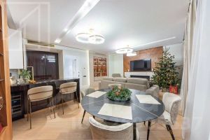 Планировка: просторная кухня-гостиная с потрясающими видами на Москва-реку, мастер-спальня с гардеробной комнатой и своим санузлом, ванна и душевая кабина, детская комната со встроенными шкафами и прекрасными видами на МГУ. Выполнен дизайнерский ремонт.