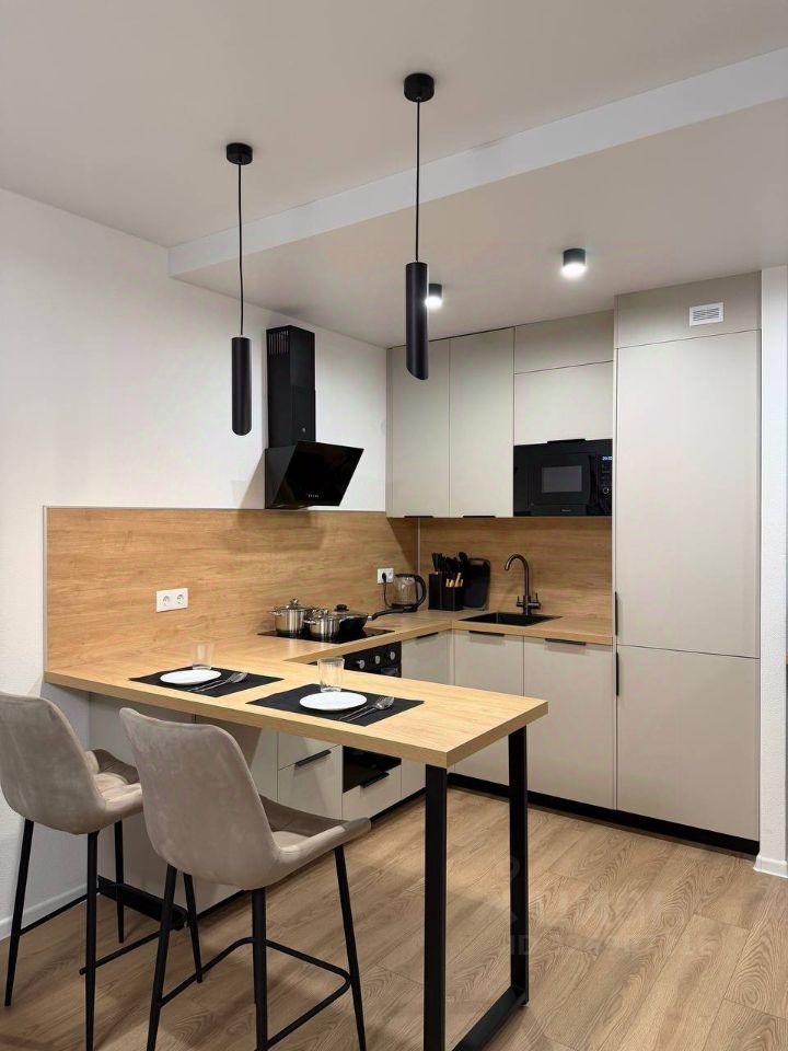 -кухня-гостиная: двухкамерный встроенный холодильник, встроенный духовой шкаф, варочная панель, вытяжка с угольным фильтром, встроенная микроволновая печь. встроенная посудомоечная машина. установлены под раковиной фильтр для воды, чайник, телевизор, WiFi роутер, Кондиционер.