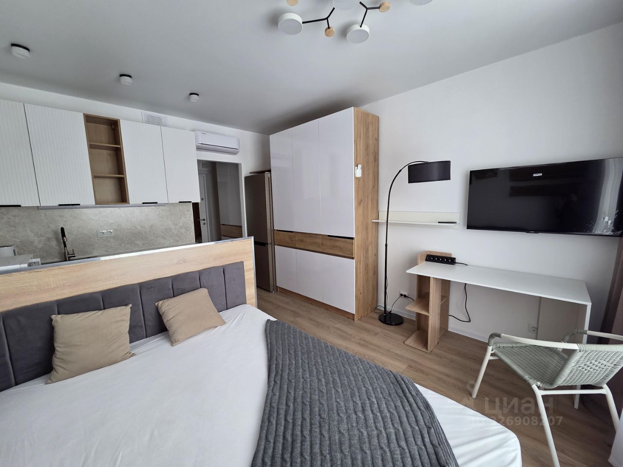 Студия с хорошо укомплектованной кухней ( пмм, индукционная панель, духовка, стиральная машина, кондиционер, чайник)