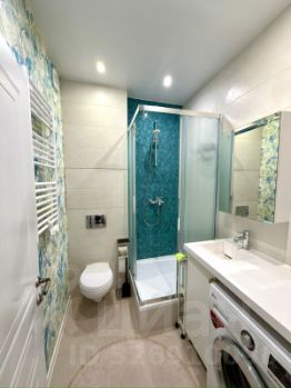В ванной комнате душевая кабина, есть стиральная машина, вместительная тумбочка,электрический полотенцесушитель.