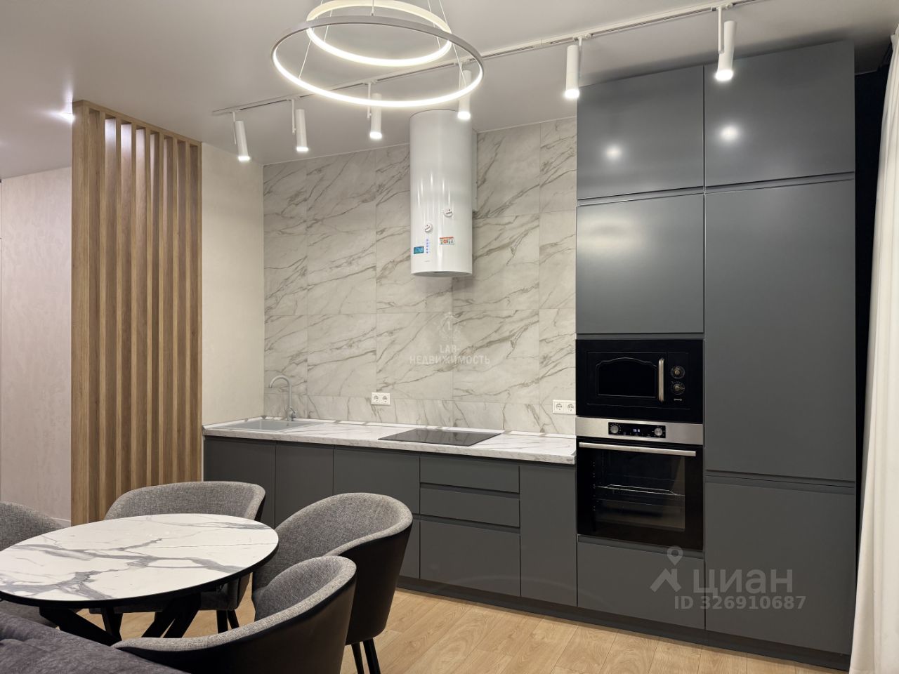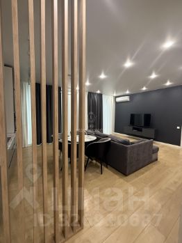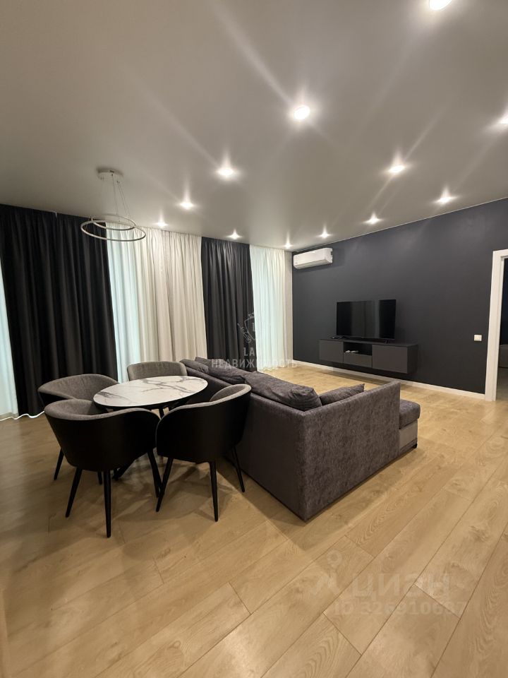 Общая площадь 63,1 кв.м., спальня 18,8 кв.м., кухня- гостиная 25,4 кв.м. В квартире выполнен современный ремонт, есть вся необходимая мебель и техника для проживания ( кухонный гарнитур с встроенной техникой: варочная панель, вытяжка, микроволновая печь, духовой шкаф, встроенный холодильник, посудомоечная машина; стиральная машина, телевизор, wi-fi роутер, диван в кухне-гостинной, двуспальная кровать с подъемным механизмом, прикроватные тумбы, встроенный шкаф купе, шкаф в прихожей, подвесные тумбы под ТВ, а так же есть гардеробная).