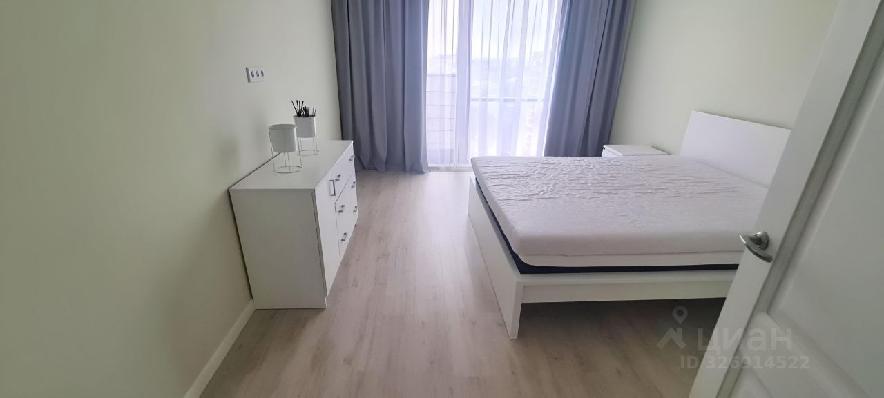 На кухне встроенный гарнитур с варочной панелью, духовым шкафом, встроенным холодильником, вытяжкой и посудомоечной машиной. Обеденный стол и 4 стула. Диван раскладывается в полноценное спальное место, что идеально для гостей. Вторая комната оборудована как спальня с большой кроватью, вместительным шкафом и тумбочками. В апартаментах 2 просторных санузла, в одном из них ванная, в гостевом — стиральная машина. Есть кондиционер.