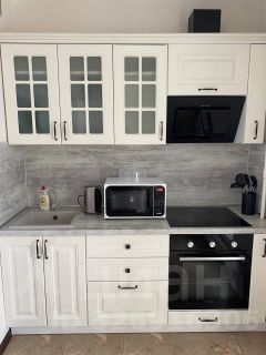В квартире есть все необходимое для комфортного проживания: новая мебель в комнате и на кухне, техника — кондиционер, холодильник, телевизор, стиральная машина. В совмещенном санузле установлена ванна. Из окон открывается вид на улицу, а на лоджии можно устроить уютный уголок для отдыха.