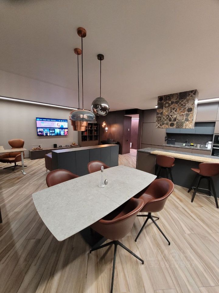 Установлена техника: холодильник Side-by-Side Liebherr, кондиционеры, стиральная машина Elecrolux , телевизор Samsung , посудомоечная машина Neff, духовой шкаф и микроволновка Neff , варочная панель Ligron , очистка питьевой воды.