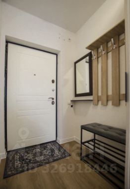 Полностью новая меблировка: имеются кровать, практичные системы хранения, включая несколько шкафов, ЖК телевизор, робот-пылесос. Стеклопакет, ламинат и светлые тона обоев.