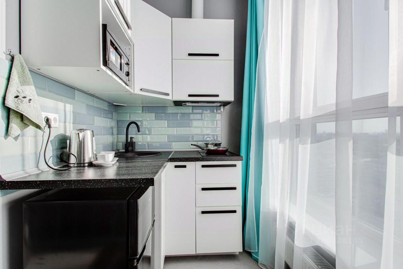 - Кухня с холодильником, плитой, микроволновкой, чайником и посудой