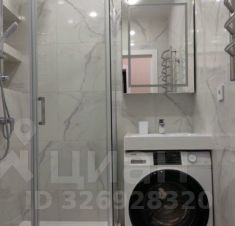 На кухне холодильник, микроволновка, электрочайник, вытяжка, варочная панель, набор посуды. Санузел совмещённый, отделан мраморным керамогранитом. В санузле есть: шкаф со светодиодной подсветкой, душевая кабина, электрический полотенцесушитель с регулировкой мощности, сантехника немецких брендов GROE и Wassercraft, стиральная машина Haier c функцией стрики паром. Установлена система от протечки воды Нептун.