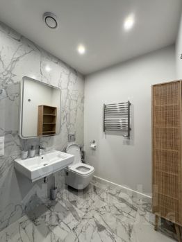 Квартира выполнена в дизайнерском стиле и полностью готова к проживанию. В комнатах установлена современная мебель, на кухне — вся необходимая техника: холодильник, посудомоечная машина, посудомойка. В апартаментах два совмещенных санузла, в одном из которых есть ванна, а в другом — душевая кабина. Для вашего удобства в квартире установлены кондиционер и телевизор.