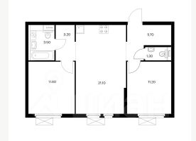 Два с/у, две спальни, кухня-гостиная. Примерно 20 мин. пешком от метро Коломенская/Нагатинская.