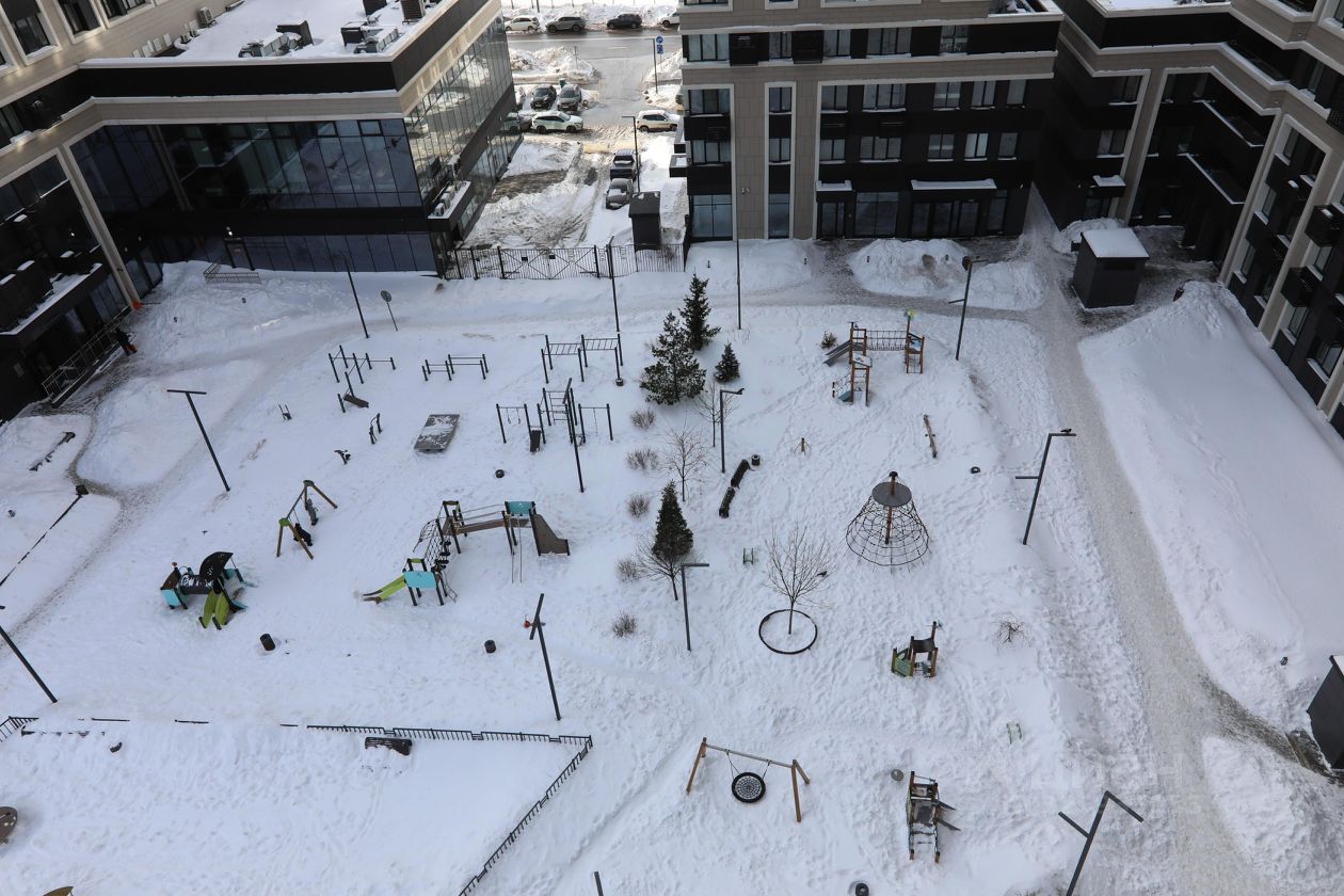 Территория ЖК охраняемая и закрыта для посторонних. На первых этажах размещены магазины, аптека. Благоустройство двора включает в себя: детские и спортивные площадки, лаунж-зоны.
