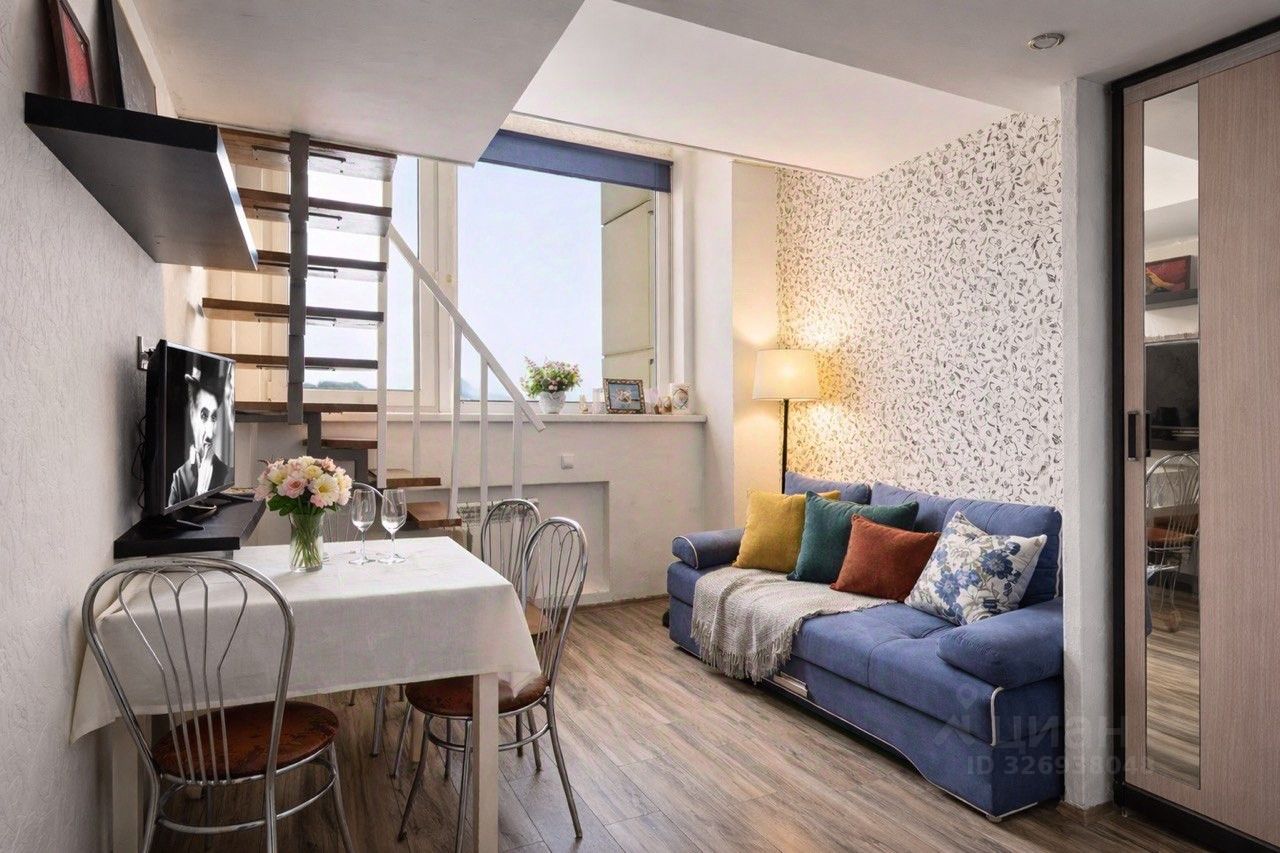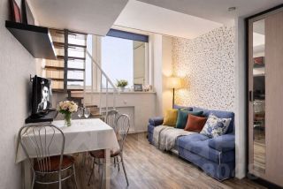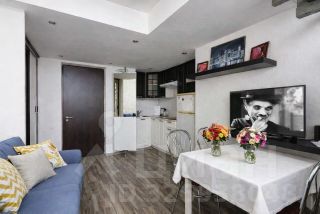 Апартаменты 2ух этажные( на первом кухня-гостинная , на втором спальня, санузел и гардеробная.)