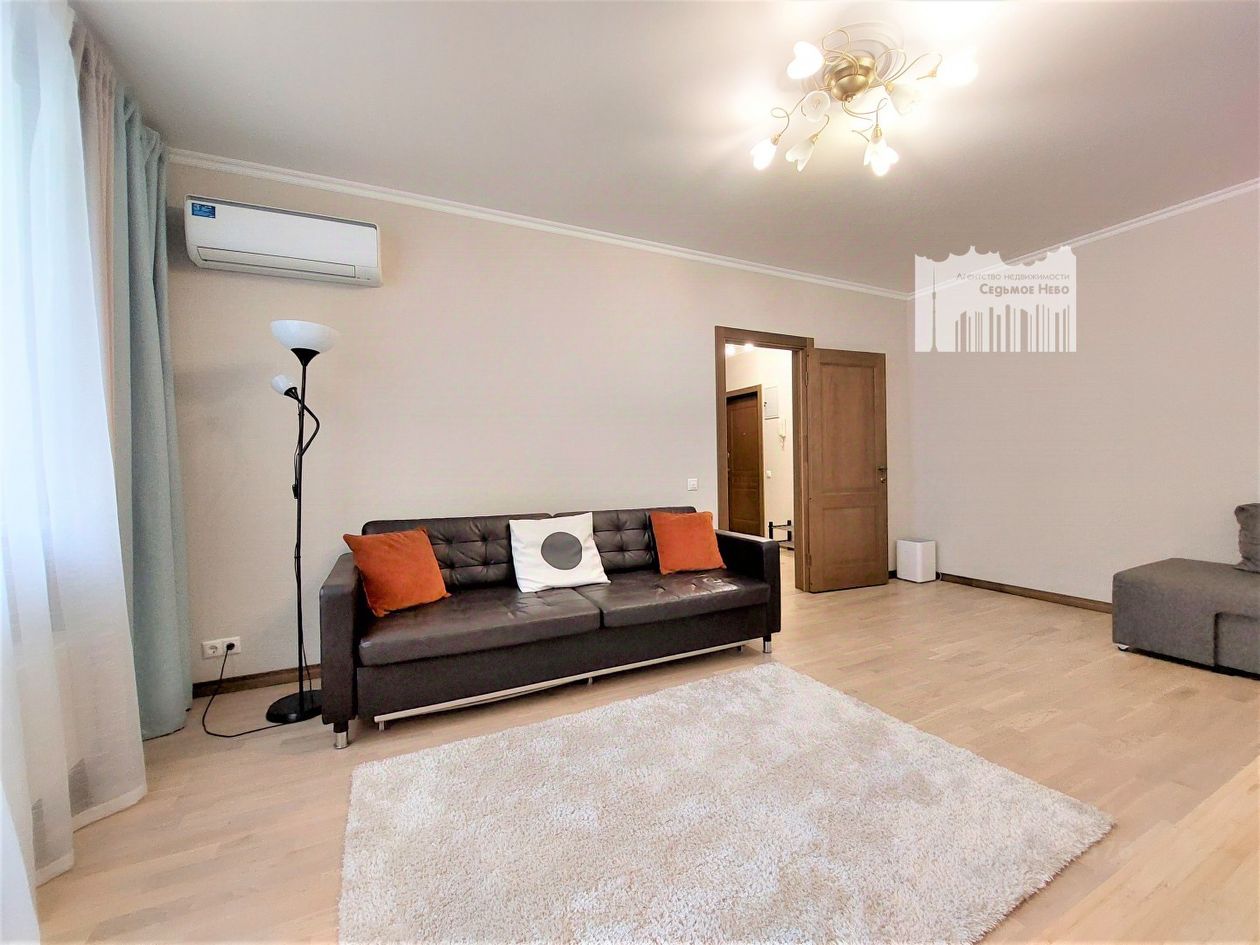 Квартира очень светлая и теплая, с приятной атмосферой. Современная мебель и оборудование. Качественный ремонт от собственника. В комнате на полу уложена паркетная доска. В прихожей, кухне и санузле пол выложен плиткой и оборудован подогревом, что очень практично и комфортно. В комнате установлен кондиционер. Окна выходят на тихий двор. Застекленный балкон. В подъезде дежурит консьерж.