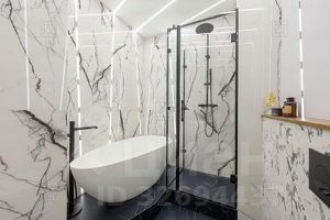 В квартире был выполнен ремонт в светлых тонах: дубовая инженерная доска, белые двери, итальянская кухня, натуральный камень, итальянская сантехника и.т.д. В квартире есть приточно-вытяжная вентиляция и центральное кондиционирование. По планировке: очень просторная зона гостиной со столовой и кухней, мастер-спальня, большая ванная с душевой кабиной, много встроенных шкафов, гардеробная.