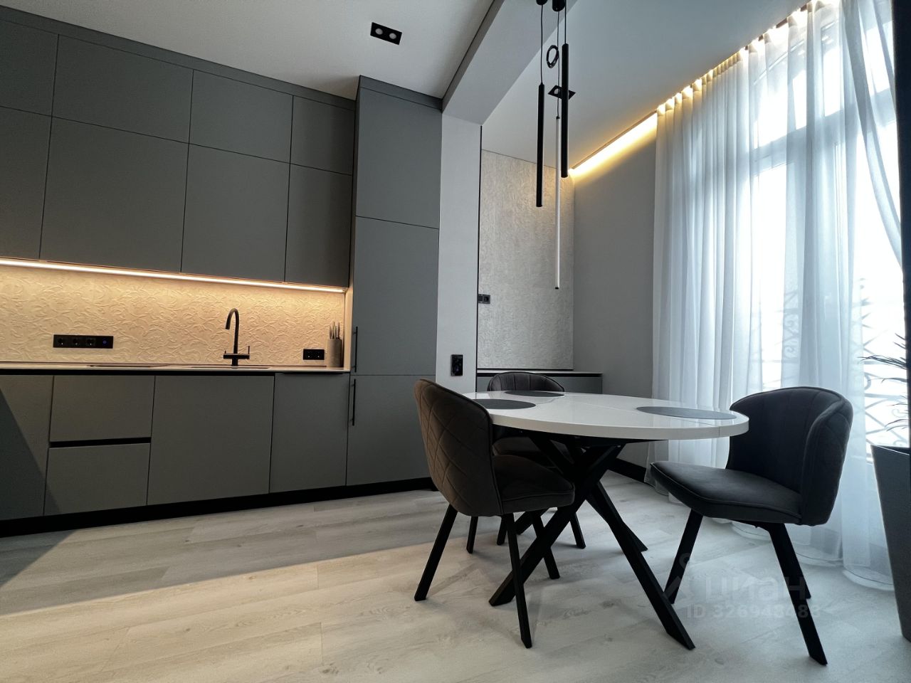Квартира полностью укомплектована современной мебелью и бытовой техникой.