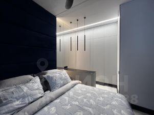 В спальне большая зона для гардероба, туалетный или рабочий столик, большая кровать с подьемным механизмом, матрас "Орматек", на потолке вентилятор.
