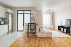 ID 44818. Вашему вниманию предлагается видовая 2-комнатная квартира с современной отделкой в уникальном ЖК "Царская площадь". Современные интерьерные решения дополнены стильной мебелью и оригинальными предметами интерьера. В квартире установлены кондиционеры, кухонная техника, проведён скоростной интернет, теплые полы, качественная сантехника, раскладной диван. Общая площадь 61 кв. Прекрасная организация пространства: просторная гостиная с кухонной зоной. Спальня со своей гардеробной комнатой, ванная комната, гостевой санузел, балкон. При входе в здание жителей встречает роскошная входная группа. Рядом находится Петровский парк, до метро Динамо 5 минут пешком. Можно с детьми!Возможна аренда парковочнового места за дополнительную плату.