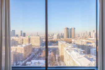 Из окон апартамента открываются виды на сквер 1812 и Москва-Сити