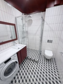 В квартире выполнен дизайнерский ремонт, который подчёркивает её стиль и комфорт.