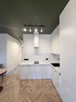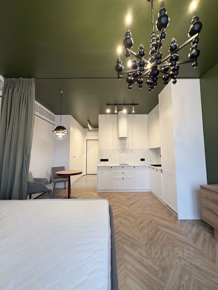 Пространство студии рационально организовано: есть всё необходимое для комфортного проживания. На кухне и в комнате есть мебель. Техника включает в себя посудомоечную и стиральную машины, холодильник, кондиционер и телевизор. В ванной комнате установлена душевая кабина.