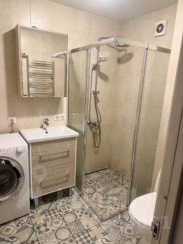 В квартире сделан современный евроремонт. В комнате и на кухне есть вся необходимая мебель. Из техники: кондиционер, холодильник, микроволновка,посудомоечная и стиральная машинка .Санузел совмещённый, оборудован душевой кабиной. Окна выходят на улицу, поэтому в квартире всегда светло и уютно.