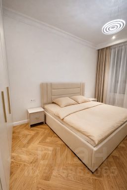 В спальне создана уютная атмосфера для отдыха. В вечернее время можно выключить основной свет и оставить дополнительное освещение
