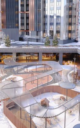 Инфраструктура: в каждом подъезде есть колясочная, скоростные лифты, в гранд-лобби консьерж-сервис, есть две комнаты для переговоров, теплая детская площадка и коворкинг. Двухуровневый двор с спортивной площадкой, частный детский сад и игровые площадки для детей разного возраста, площадка для йоги и подвесные качели. По всему жк видеонаблюдение, со временем подключат бесключевой доступ в подъезд.