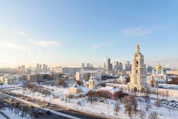 Панорамный вид с 12-го этажа — каждое утро над куполами Новоспасского монастыря. Тишина исторического района + светлые просторы (квартира 46 м² — на 10 м² больше стандартной однушки).