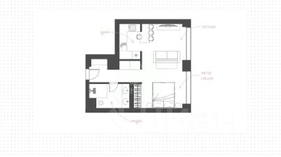 Спланирована кухня-гостиная с зоной спальни, санузел с душевой, прихожая.