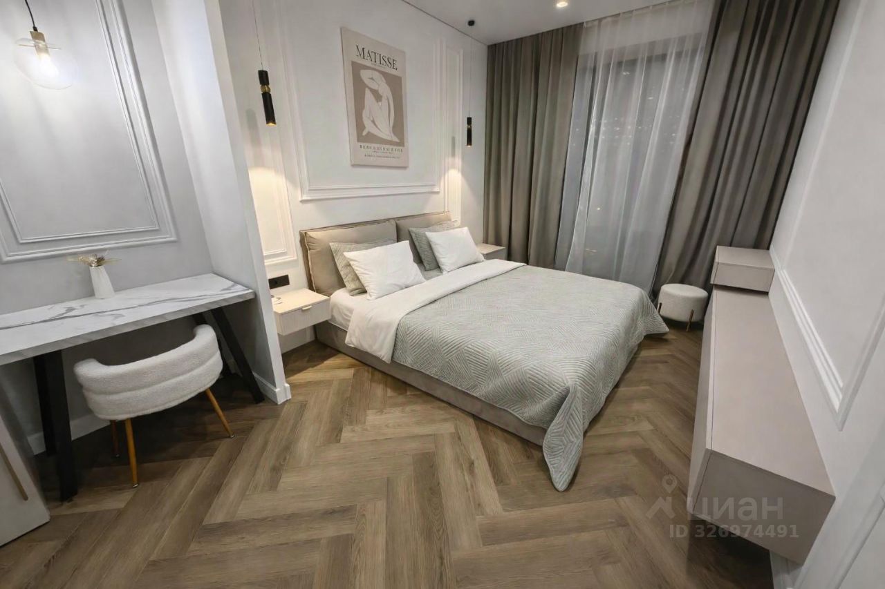 Уютная отдельная спальня с собственной гардеробной и рабочей зоной.