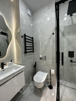 В квартире есть все необходимое для комфортного проживания, абсолютно всё новое. Для вашего удобства в студии установлены кондиционер, встроенный холодильник, духовой шкаф, микроволновая печь, индукционная варочная плита, вытяжной шкаф, посудомоечная и стиральная машины, а также телевизор, вся посуда, чайник, отпариватель, сушилка и тд. Санузел совмещенный, оборудован душевой кабиной, раковиной, зеркалом, подвесной тумбой, шкафчиком, гигиеническим душем, подвесным унитазом.