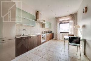 Планировка включает кухню, гостиную с обеденным столом, мастер-спальню, 2 санузла. Окна квартиры ориентированы на две стороны. Дизайнерский ремонт выполнен с использованием только самых качественных и престижных материалов. Квартира полностью меблирована и оснащена всей необходимой техникой. Для комфортного проживания предусмотрена система приточной вентиляции.