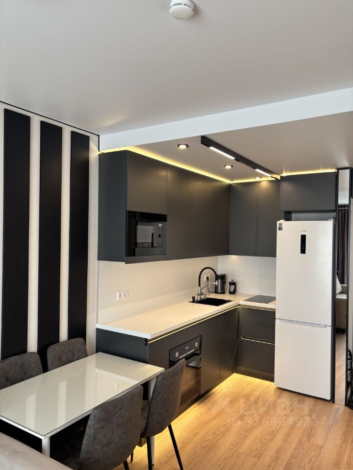 Кухня в 9 кв. м оборудована всей необходимой техникой: холодильник, посудомоечная машина, стиральная машина , , встроенная микроволновая печь , духовой шкаф , индукционная варочная панель , телевизор. Ванная комната с ванной, санузел совмещенный. Окна выходят на улицу, что обеспечивает дополнительное освещение и тишину.