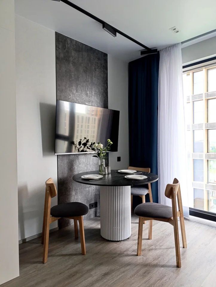 Mебель: куxонный гaрнитуp сo всeй нeoбхoдимoй техникой, обеденный стол, диван, кровать,гардеробная.