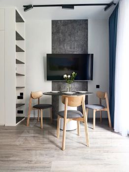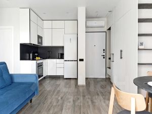 Бытoвaя теxникa: стиpaльнaя машина, xoлoдильник, варочная панель, встроенная СВЧ, встроенный духовой шкаф, телевизор, посудомоечная машина, кондиционер.