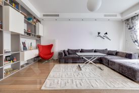 Квартира полностью оборудована функциональной и современной техникой, мебелью и декором для комфортного проживания.