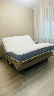 В комнате кровать Askona Ergomation 450 (размеры 160х200) с анатомическим матрасом, подъемным механизмом и функцией массажа.