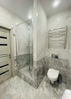 Санузел совмещенный с душевой кабиной, стиральной машиной, бойлером, гигиеническим душем, подогревом пола.