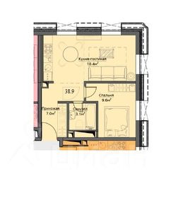 Общ.площадь 40м, кухня-гостиная 19м, комната 10м, прихожая 7.0м, ванная 3.1м. Потолки 2.85м. Есть вся мебель и техника для комфортного проживания.