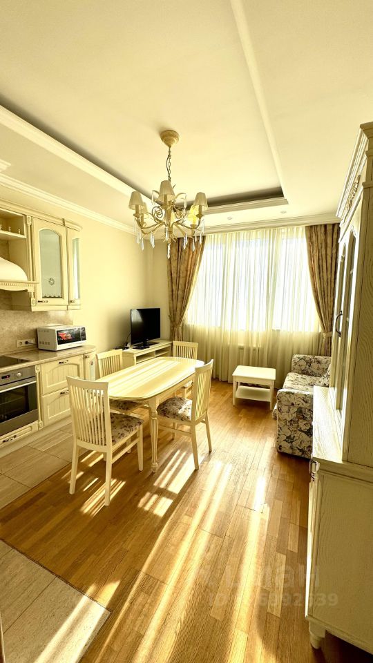 В квартире есть всё необходимое для комфортного проживания. Просторная кухня площадью 22 кв. м оснащена современной мебелью и техникой, включая кондиционер, холодильник, посудомоечную машину и телевизор. В комнате также предусмотрена мебель, а в ванной комнате установлена ванна. Совмещённый санузел выполнен в современном стиле. Окна выходят на улицу, поэтому в квартире всегда светло и уютно.