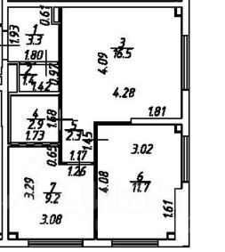 Кухня-гостиная 17 кв м, две комнаты 12 и 9,2 кв.м.