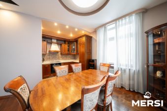 Просторная элегантная квартира с качественным дизайнерским ремонтом в классическом стиле. Пол - натуральный паркет, стены под покраску. Функциональная, практичная планировка: кухня + гостиная, 3 изолированные комнаты (одна из них мастер-спальня со своим санузлом и гардеробной), 2 полноценных совмещенных санузла. Система кондиционирования - центральное кондиционирование квартиры всех комнат, подогрев полов. Встроенная кухня со всей необходимой бытовой техникой, включая посудомоечную машину. Квартира полностью меблирована. Много мест хранения. Окна выходят на три стороны.