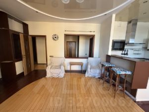 Квартира с дизайнерским ремонтом, что позволит вам наслаждаться стилем и комфортом. Просторная кухня площадью 35 кв. м оборудована всей необходимой мебелью и техникой: холодильник, посудомоечная машина и стильная обстановка. В комнатах также есть мебель, кондиционер и телевизор. В квартире два отдельных санузла, в одном из которых установлена ванна, а в другом — душевая кабина. Окна выходят во двор, поэтому в квартире всегда тихо и уютно.