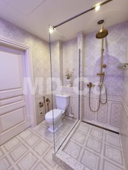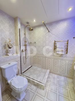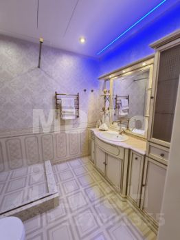 В отделке использовались экологичные материалы премиум класса. На полу - дубовый паркет, плитка из керамогранита, мозаика из оникса, на потолке - лепнина из гипса, кухня, двери, мебель - все исполнено из массива, люстры - итальянские с хрусталем Swarovski. Вся техника - Германия, сантехника - сертифицированная Италия.