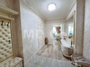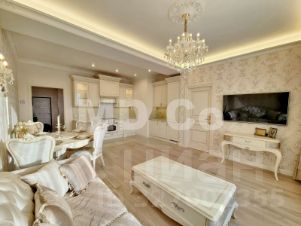 В двух комнатах панорамные окна с красивейшим видом на парк и закаты. Потолки более 3м. Пожарная сигнализация с датчиками дыма, система кондиционирования. Просторная прихожая. Отдельная гардеробная комната. Кухня совмещена с гостиной (24м²): современная кухня с резным порталом и выездными колонами. Встроенная техника: стиральная и посудомоечная машина, духовой шкаф, холодильник, вытяжка. Обеденный стол с мягкой зоной и раскладным диваном на двоих. Большой ЖК-Телевизор. Изолированная спальня (17 м²): двуспальная кровать с двумя тумбочками, комодом, туалетным столиком с зеркалом и креслом. Шторы блэкаут. Совмещённый санузел с душевой кабиной. Теплый пол везде где плитка: коридор, санузел, кухня. Централизованное кондиционирование с настенного встроенного пульта