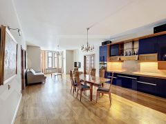 ID 12773: На Арбате предлагается в аренду просторная трехкомнатная квартира площадью 102 кв.м с современной планировкой студийного типа. Основное пространство занимает светлая гостиная, объединенная с кухонной и столовой зонами, что создает ощущение свободы и воздуха. Жилой блок включает основную спальню и комнату свободного назначения, которую легко адаптировать под кабинет, детскую или гостевую. Квартира полностью укомплектована качественной мебелью и техникой для комфортного проживания сразу после сделки. Особое внимание уделено здоровью и отдыху - в просторной ванной установлена собственная сауна. Для автовладельцев предусмотрено парковочное место на огороженной территории двора. Идеальный выбор для тех, кто ищет сочетание исторического окружения и современного комфорта в самом сердце Москвы.