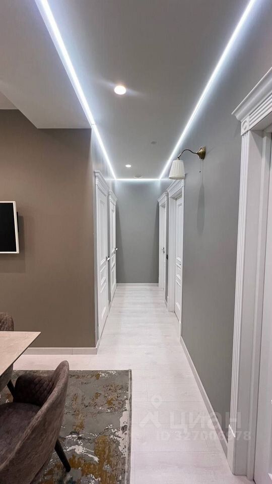В квартире выполнен дизайнерский ремонт в современном стиле, использованы дорогие материалы, встроенная кухня имеет очень много места для хранения, а так же оснащена качественной бытовой техникой (современная газовая плита, духовой шкаф, свч, посудомоечная машина), холодильник sidе by sidе.. Столешница на кухне из искусственного камня, в санузлах установлена качественная сантехника. Комнаты оснащены