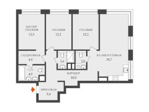 мастер-спальня с собственной гардеробной и санузлом + 2 спальни или 1 спальня и кабинет;